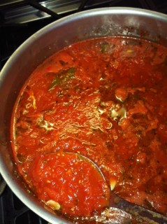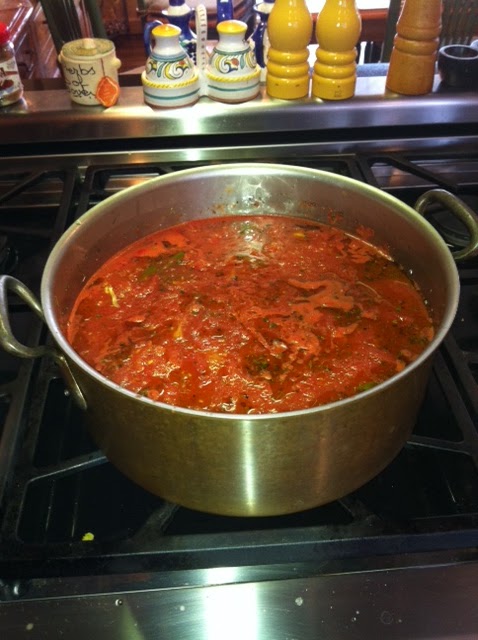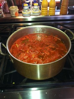 So today I am going to share my mother’s version of “marinara sauce” with you. There are many variations on this sauce. My husband makes a delicious one, but it is not my mother’s. Once again, the pot used for cooking the sauce is very important, at least for me. It is the only way I can get the exact flavor. My Aunt Gerry, my mother’s sister, gave me a classic 1970’s Dutch Oven for my birthday right before I was married, as she knew that was THE pot to use. I used that pot to create a perfect replica for 30 years before throwing it out. That was a very sad day for me. I actually passed this pot around to my dearest friends who wanted to replicate my sauce. It took some time to find a replacement pot that would create the same taste, but I finally found a copper pot that is as close as it gets. I am satisfied with this.