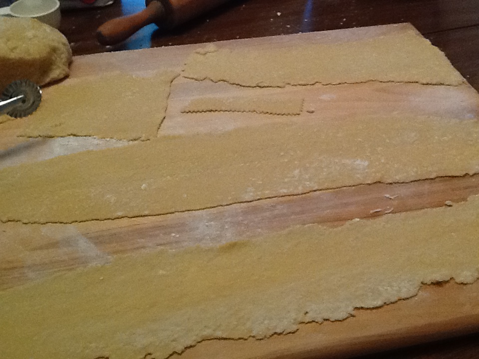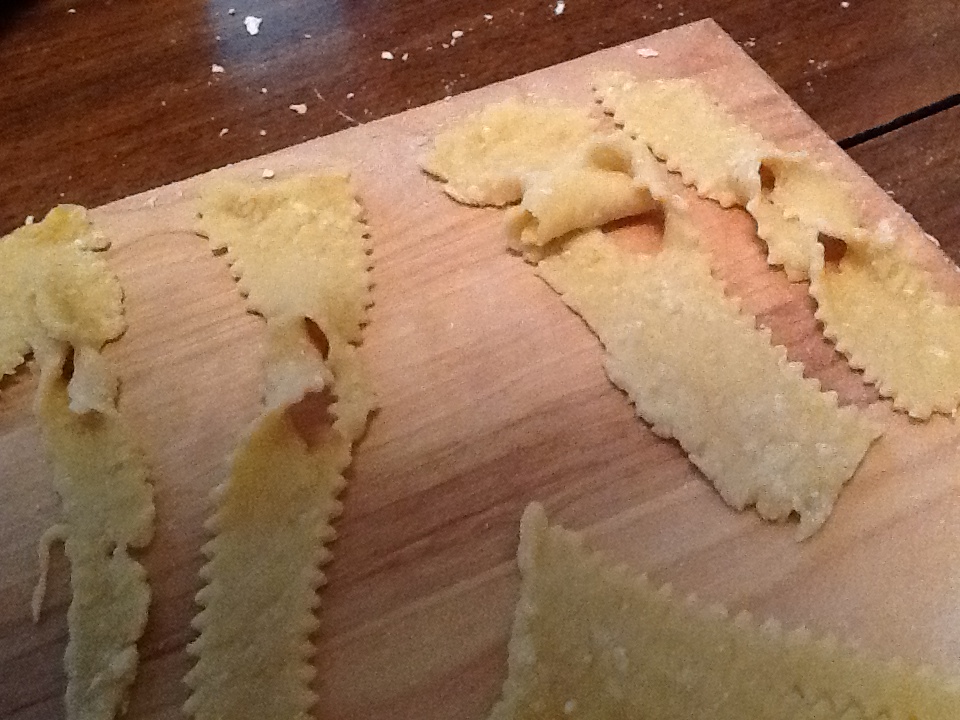 So back to Ribbons.  I can still see my grandmother and mom working together, over the pastry board, kneading and twisting these delicate pieces of dough into the shape of ribbons.  Eventually my mom took over the kneading as my grandmother became more frail, and my grandmother would sit for hours, forming the dough into ribbons with her beautiful, perfectly manicured, even till the end, hands.  I still want to reach out and hold her hand, stroking her bright red nails one by one, as I often did.  As children, my sister and I would sit at the kitchen table with them, and would do our best trying to form the perfect ribbon.  This is not an easy task for a child, but over the years, you develop the knack and it gets easier.  So there we were, back in the 50s and 60s, three generations bonding in the kitchen.  Here we are in a different century, but my mom, my sister and our daughters form this three generational bond at Christmas time, making our Ribbons.  Usually a cousin or two will stop by and stories start rolling.  Each year we seem to learn something new about a relative or old family friend.  The family albums come out of the closet and we end our day with a glass of wine and shared memories.  Two added pluses……we now have a fourth generation helping (my grandson, who at 6 years old loves to put the dough through the pasta machine, making it as thin as can be)…..and I have my grandmother’s hands!!!
