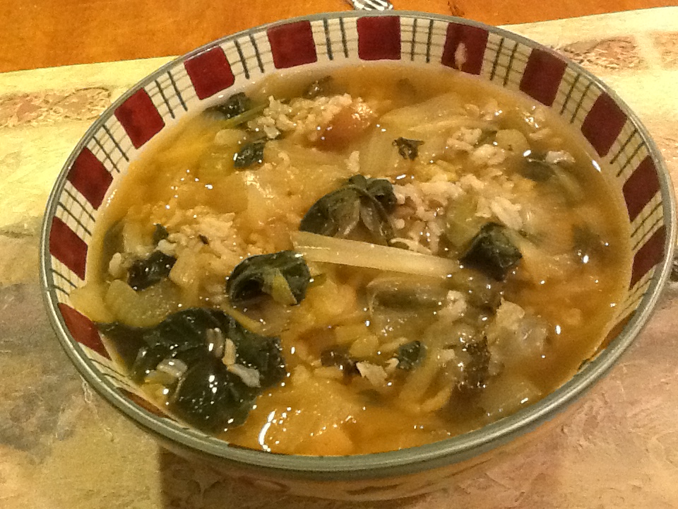 The Holidays are over, and like most, I’m constantly hearing about healthy eating, cleansing, de-toxing, 100 different types of diets and exercise plans. You cannot turn on the TV or pick up a magazine without feeling guilty that you are just not interested in any of it. I enjoy all sorts of exercise and always have a moderate, varied plan in place, and I try all year long to eat healthy, with some splurges now and then (mostly now). I am just not interested in trying the new “Stiletto workout” and drinking nothing but green juice for a week. First of all, I can not even walk in stilettos, let alone do a workout in them. And it literally pains me to take gorgeous fresh vegetables and put them through a machine and watch 5 drops of juice come out, and then throw the rest away. Sorry, but I will stick with yoga and vegetable soup. So today I would like to share my secret for delicious (and cleansing) vegetable soup. The secret is to throw any vegetables, herbs and spices that you love into a huge pot of water, add some seasonings and cook for at least an hour. When done, you can add some beans, brown rice, pasta, if you like, and you will be very, very, happy. Don’t worry. I am not going to leave you hanging like that without any direction. I will give you the recipe that I concocted last night, with variations, so you can begin the fun of creating your own different, delectable “healthy” soups. Half the fun, is doing something different each time, and then awaiting the taste and making mental adjustments for the next time.