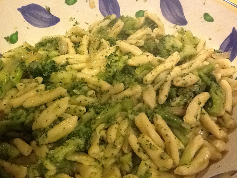 However, when I think of this dish, I remember it as my mother’s. It was a family favorite so she made it often. It was the dish that most people requested when coming to our house for dinner. She became famous for it. It’s one of those dishes that people actually moan with delight while eating. Now we all have had pasta with broccoli, and perhaps you don’t remember any moaning, but I believe that there are two ingredients in this recipe (that are usually not used), that make the difference between “moaning” and just “enjoying.” These are anchovies and onions (no garlic at all). Also, cooking the broccoli and the pasta together, in the same salted water, adds to the flavor. Cavatelli is what we use, but certain pastas such as ziti works wonderfully. I have also used a pasta made from faro in this dish, and it is very tasty. However, myy family are purists, especially with traditional recipes (they want the taste to be exactly as they remember), so 99% of the time, I use cavatelli. One more note….. if you really don’t like anchovies, you can eliminate them. The taste will be somewhat different, but still delicious. Most people don’t even realize that there is anchovy in this, and are shocked when I tell them. You also can control how much you use. Even 1 or 2 filets will make a difference that I think you will enjoy. And of course, if you love anchovies, then go for it! I would love to hear your comments about this.