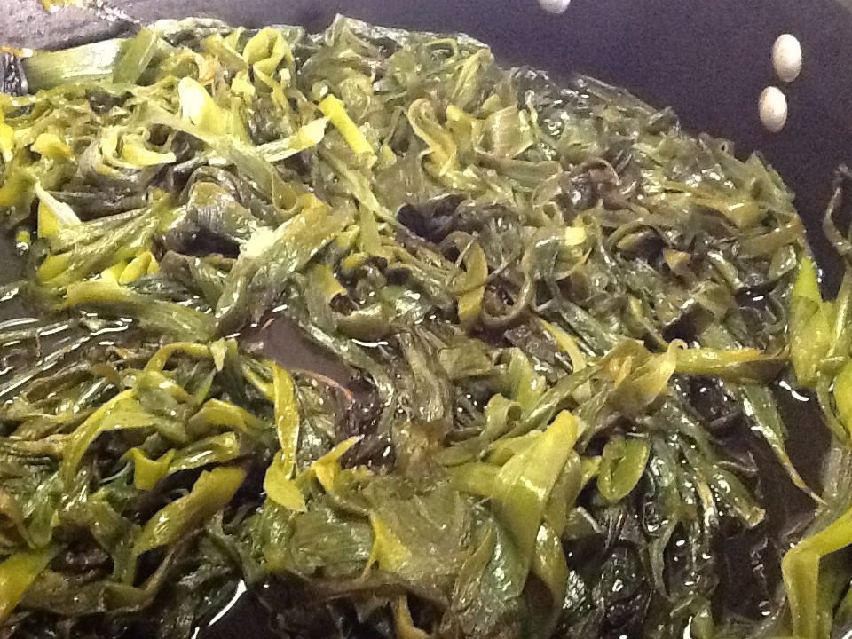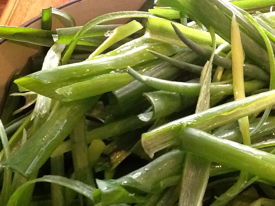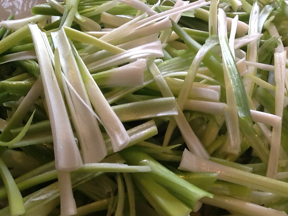 1. Cut the scallions in half, separating the green part from the white. Slice them into approximately 1/4 inch wide strips. I’m only giving you this measurement so you have an idea of how they should be. Honestly, as you will see from my pictures, they end up being all sizes. But do keep the greens separate from the whites.