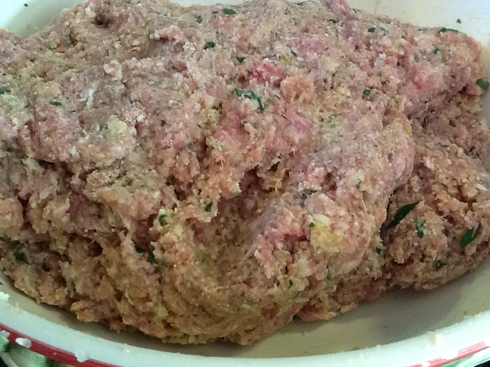 2 lbs. of chopped meat, a combination of beef, veal and pork