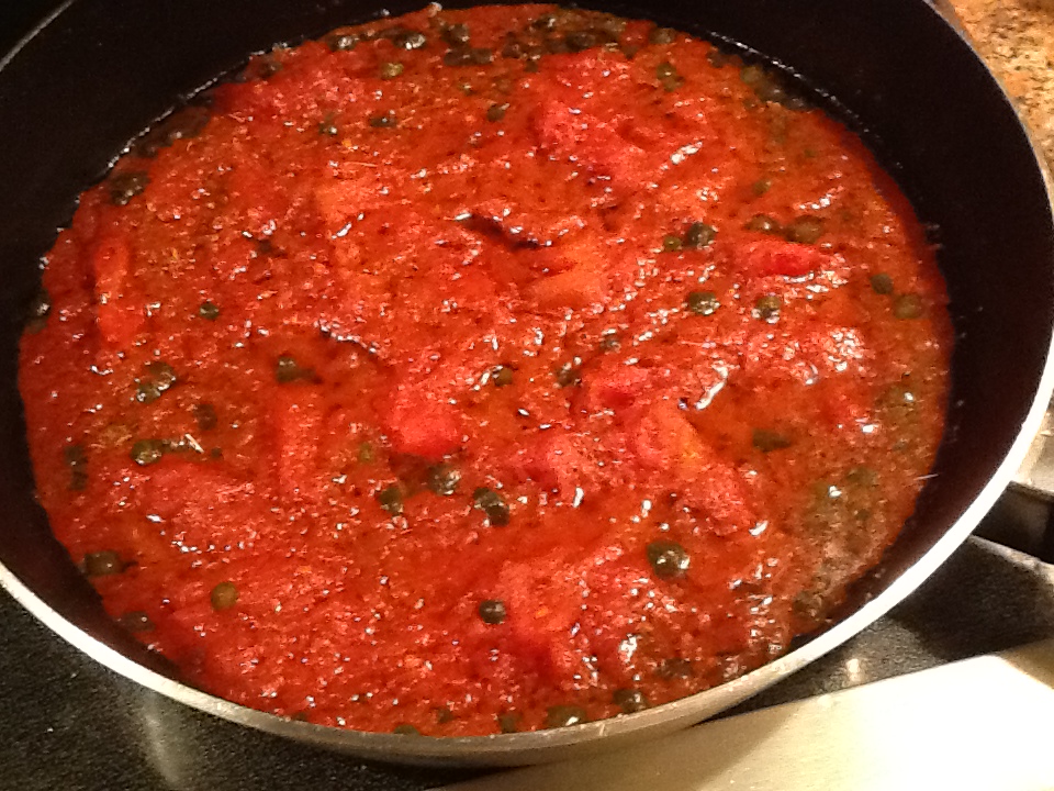 5. Add the capers (and hot pepper if desired) and cook on low flame for 5 minutes.