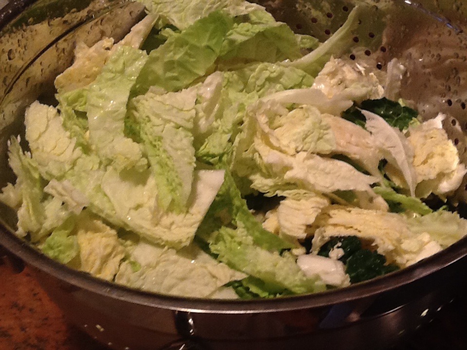 2. Slice cabbage and add to boiling water. Boil for 5 to 7 minutes