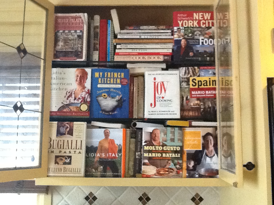 I think it’s time for me to confess my cookbook obsession. I have been collecting cookbooks for 40 years and have never discarded a single one. I just keep adding to my collection no matter how hard I try to stop myself. I just can’t stop! I read through them like novels, earmarking recipes I would like to try. I set challenges for myself to make a new dish from a cookbook every week. I don’t always succeed, but I love the challenge. And then there are the cooking magazines that I also collect. I save years worth of these magazines, before I can unwillingly throw them out, but not before I rip out the recipes that I promise myself I will make. I have these recipes filed away in folders along with all my handwritten ones. What am I thinking? Do I think I will live to be 120 years old and cook every day for the rest of my life?! Or maybe it just makes me feel good to see all these familiar friends (oh yes, I feel chummy with some of my favorite cookbook authors) on my kitchen shelves and in different parts of the house.