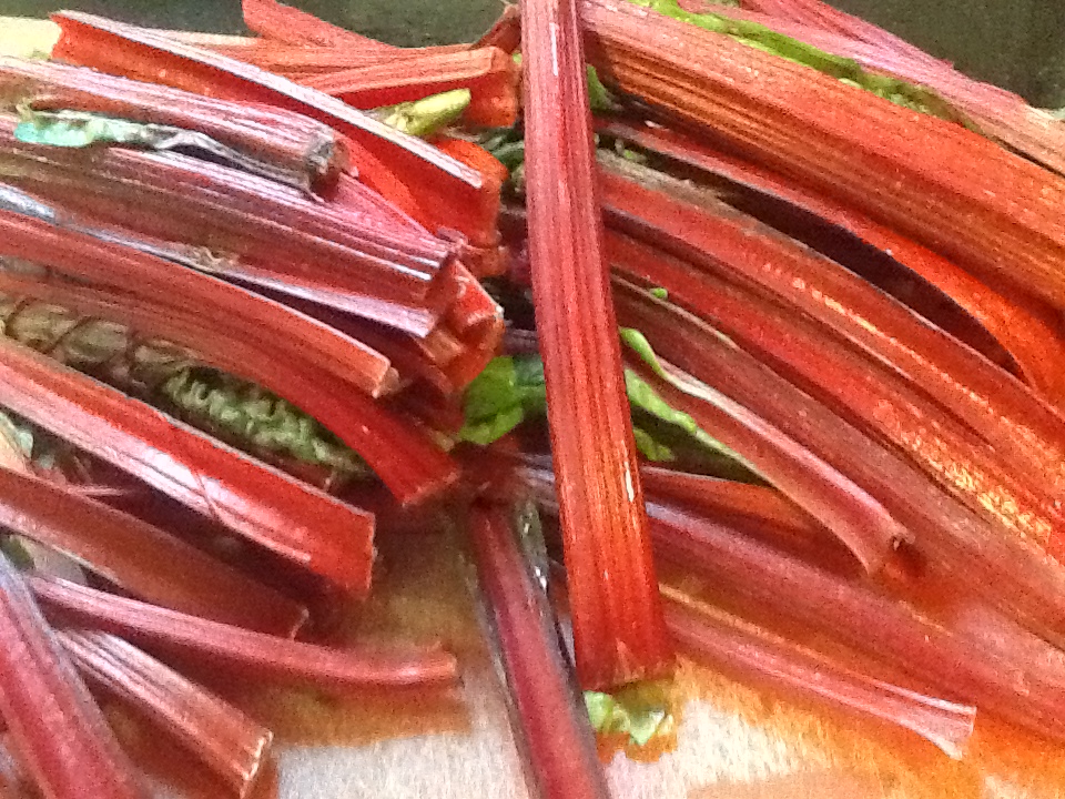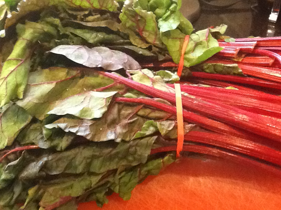 Swiss chard is a delicious and beautiful vegetable. Even though it is available all year long now in our supermarkets, it reminds me of summer. This is the time of year that my mother would prepare it. As a child in the 50s and early 60s, we used to have a”vegetable truck” that came to our neighborhood twice a week with bushels of whatever fruits and vegetables were in season. “Cappy” drove a converted old school bus, painted green. It was so much fun to climb inside and look at all the fresh produce. He was a friendly man, who continued this service well into the 1980s, even though his business was replaced with mega supermarkets and specialty stores. Also as women entered the work force, they were not home during the day and often stopped at the grocery store on their way home from work. Take-out food began it’s popularity, even in the suburbs. But back in the day, my mom and the other women in the neighborhood would buy whatever looked good that week. There were always some vegetables that did not look familiar to most, but my mom knew how to make almost any vegetable taste delicious. Of course she did…..garlic, olive oil and tomatoes!