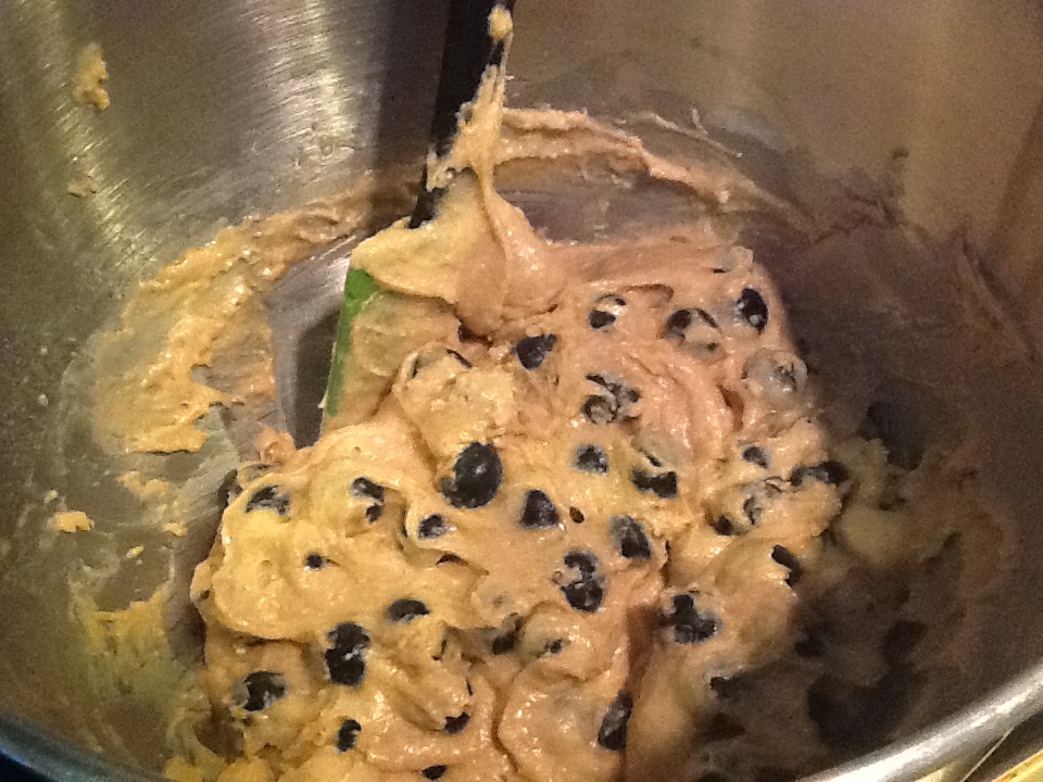 3. Mix the milk, egg, and vanilla together and stir into the dry ingredients just until the ingredients are moistened. Stir in the melted butter. Lightly mix in the blueberries.