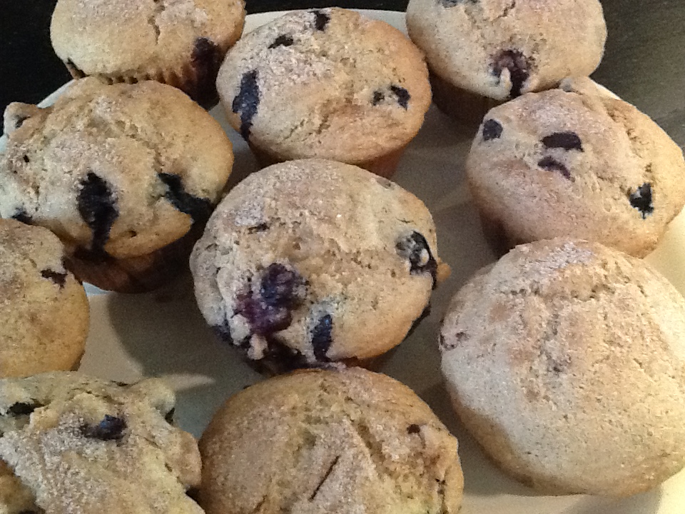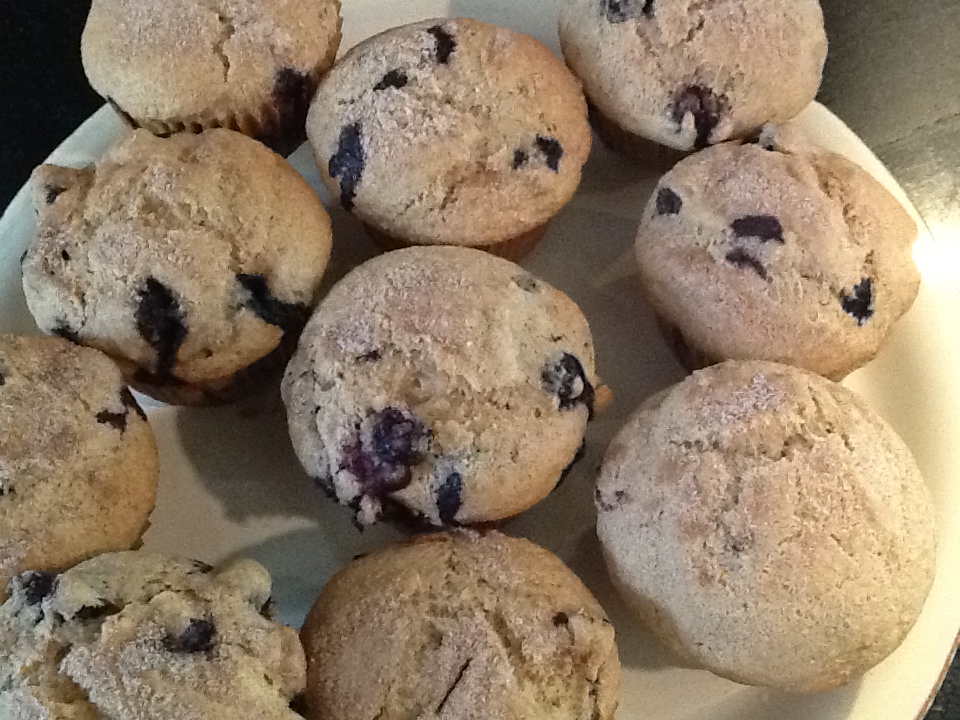 Every summer, when blueberries are abundant, inexpensive, and taste like candy, I eat them by the handful, and bake with them until my family cries for mercy. The first few (okay, maybe dozen) pies I make, they are very happy, but then someone will coyly ask, “remember that delicious peach pie you used to make?” and I know it’s time to cool it with the blueberries. So I just move on to the many other wonderful goodies you can make with blueberries. The past two years I have purchased 10 pounds of blueberries at a time from my local CSA (Community Supported Agriculture). Needless to say, I have pulled out all the blueberry recipes from the past, and have added many new ones to my repertoire. I’m always amazed at how many recipes I have collected over the years for blueberry muffins. It’s hard to imagine that there could be so many different versions of something so simple. I believe that it’s the actual taste of the blueberries that contributes so greatly to the outcome of each baked item. Out of season, when the blueberries taste like blue styrofoam (for $6.00 a pint), the finished item is still quite tasteless, no matter how much sugar you add to it. But in season, it is almost irrelevant what else is in the batter. I do however, have my favorite recipes, especially for blueberry muffins.