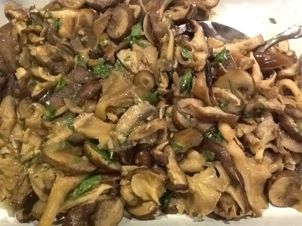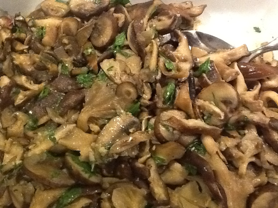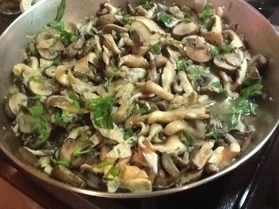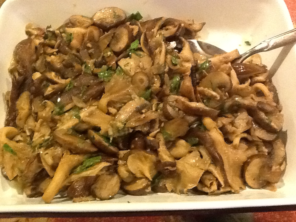 Somewhere in the early 1960s, this dish of sautéed mushrooms made it’s way into our Holiday menu. I remember watching my Aunt Mary, in her Bronx kitchen, stirring a huge frypan of this weird looking vegetable and wondering if I would like it. It was Christmas Day, and we already had too much food. Why add something new…….and this of all things?! It was a hit, and now this became a staple for most of our Holiday meals, and even Sunday dinners. It certainly was a welcomed addition to our oftentimes overcooked Sunday roasts (sorry, mom). I was always happy to smell this cooking on the stove.