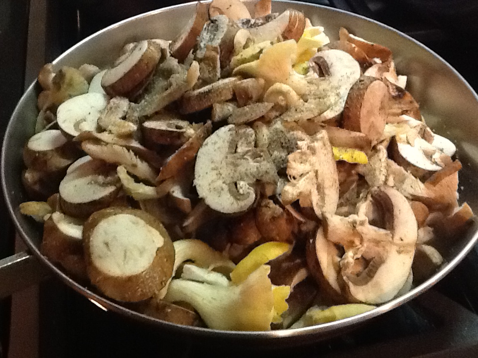 2 to 2 1/2 pounds assorted mushrooms, cleaned and roughly sliced.