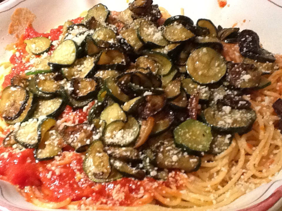 This recipe for Spaghetti with zucchini came from a restaurant called Ruggiero in Little Italy, New York City that was frequented by most of our family in the 1970s and 80s. My mom and her brother are responsible for obtaining this recipe, which was a family favorite, from their chef. Believe it or not, this dish was very fancy for its day. Ruggiero ( and most of Little Italy for that matter) no longer exists, but this recipe lives on within my family. Each time we make it, we recall all the delicious food and fun times we had sitting in this cozy restaurant on Grand Street in New York’s Little Italy.