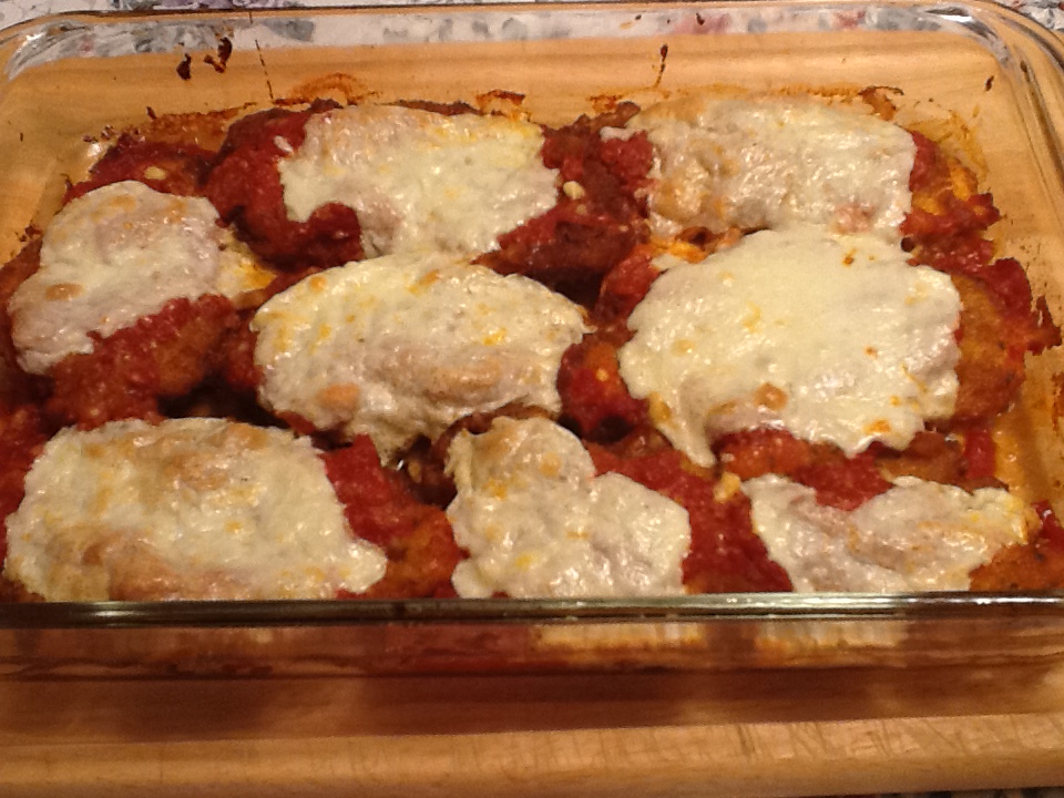 ** If you want to just have delicious breaded cutlets, do not top with the sauce and cheeses, and just bake in the same manner. Serve with lemon wedges (not ketchup!), and/or on top of a mixed salad.