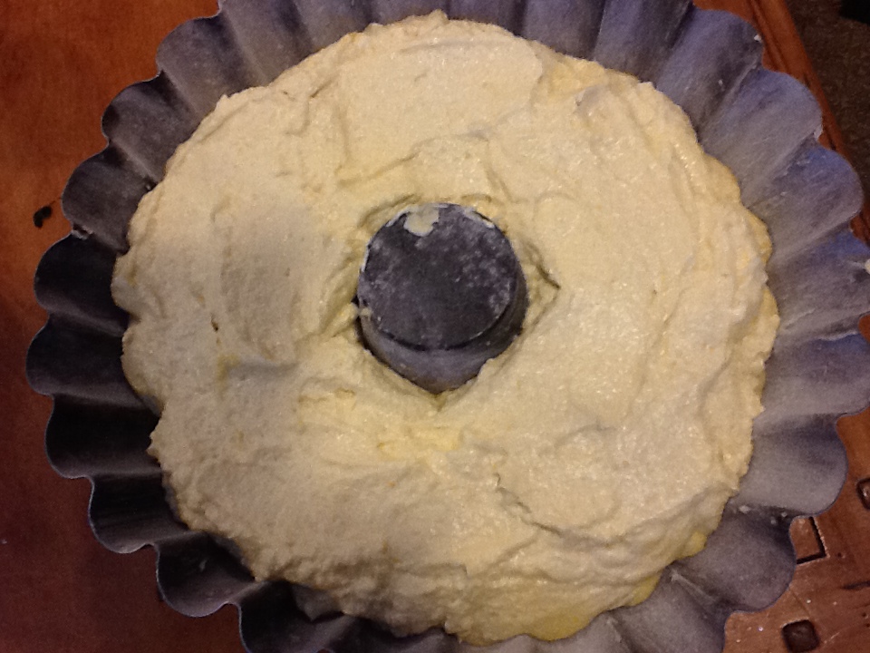 2.  Butter the non-stick Bundt pan and coat lightly with flour.  Shake out the excess flour.