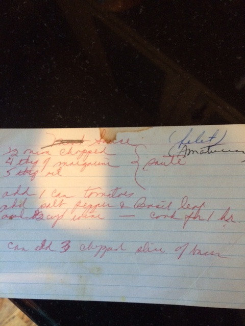 It’s Fall and cherry tomatoes have lost their appeal, but Sunday comes every week and we Italians need a red sauce. For most of my childhood, this meant meat sauce with meatballs and all sorts of “gravy meat,” such as beef and pork ribs, sausage and braciole. (You’ll find my recipe for Sunday gravy under the post “Little Nonni’s Baked Spaghetti”). While I’m not complaining (I looked forward to those meatballs every week), it was a bit boring. This course was then followed by more meat (usually a roast, such as veal, lamb or pork cooked to death for at least twice the amount of time needed…no meat thermometers in our house!) So when Bucatini all’ Amatriciana made it into my mom’s repertoire in the 1970s, I was quite happy. It still has that hearty, meaty flavor of meat sauce, but is so much easier and quicker to make. It was certainly much less intimidating for a new cook, such as myself, so I would watch her make it. She didn’t have a name for it then, nor the correct ingredients as there was no pancetta to be had at that time, let alone Guanciale (pork cheeks/jowls), which is what most restaurants use now for this sauce and can be found in some specialty markets. She used bacon ( which by the way, I still use sometimes), and “margarine,” of all things. Over the years, I have made a few changes to her recipe ( got rid of the margarine, for one thing), and conferred with several different cookbooks to come up with a rich, earthy sauce that is delicious on any macaroni shape, but I usually stick with bucatini, as the people of Amatrice intended. Yes, this pasta sauce is named for the town in Italy where it originated. This small town is just outside Rome, so it can be found on most menus in Rome, as the Romans have tried to claim this for their own. Don’t be fooled.