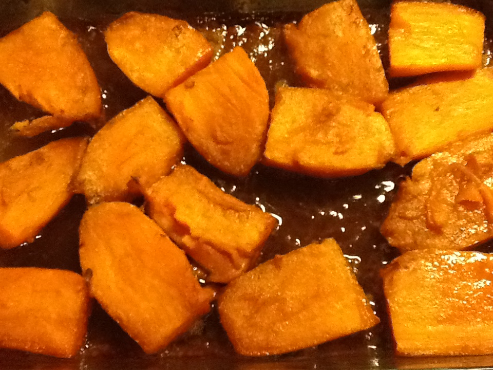 My mother’s candied yams were the highlight of Thanksgiving for me each year. I think this was true for most of our family, except my grandparents, who didn’t quite understand this dish. To them something this sweet and gooey was supposed to be dessert, not a side dish. While my grandparents were alive ( they both lived to be 103 years old), our Thanksgiving dinner was enough to put a person in the hospital from over-eating. Honestly, some years I really felt like I needed to go to the emergency room after this feast. We began at the table with my grandfather’s homemade mozzarella, still warm and right from the water in which it was made. The next course was either Little Nonni’s baked spaghetti ( you can find that recipe in the blog archives) or her lasagna. I’m not lying! Then out came the turkey and all the fixings. Seriously? Any mere mortal would be full at this point. It was hard to imagine digging in to all this after all that. Nothing really excited me about turkey, stuffing, cranberry sauce, but I ate it, especially out of duty to my mother. This was her contribution to the meal and she worked very hard. I felt an obligation to her and the pilgrims. It seemed ridiculous to be eating spaghetti on Thanksgiving. It almost felt un-American. So we all managed to stuff ourselves even more. Then one year out of the kitchen came these candied yams. We all were so responsive to this new addition, that they became an important part of the Thanksgiving meal every year going forward, and they got better every year. She always brought them with her if the holiday wasn’t in her house. We just had to have these yams.