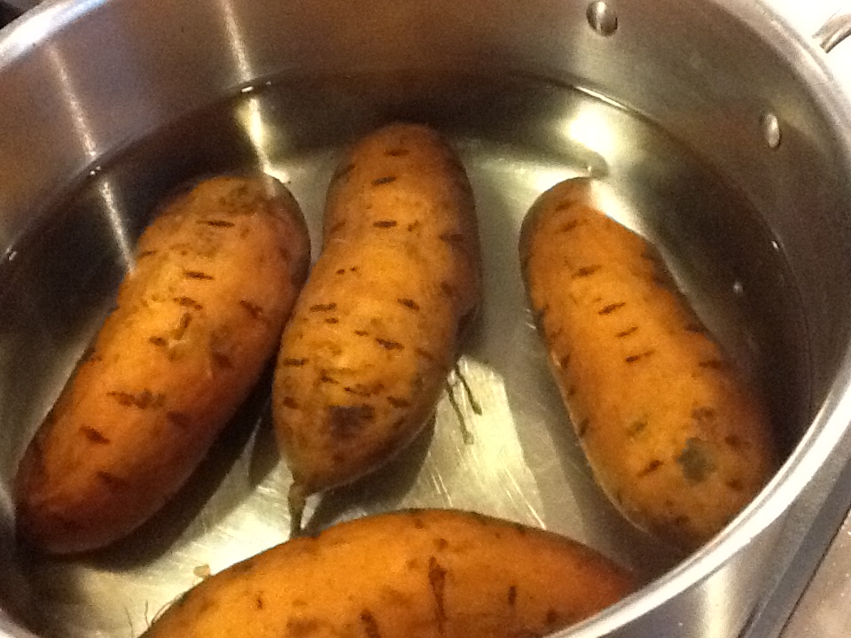 1. Scrub the yams, but do not peel. Place potatoes in a large enough pot to cover them with water.