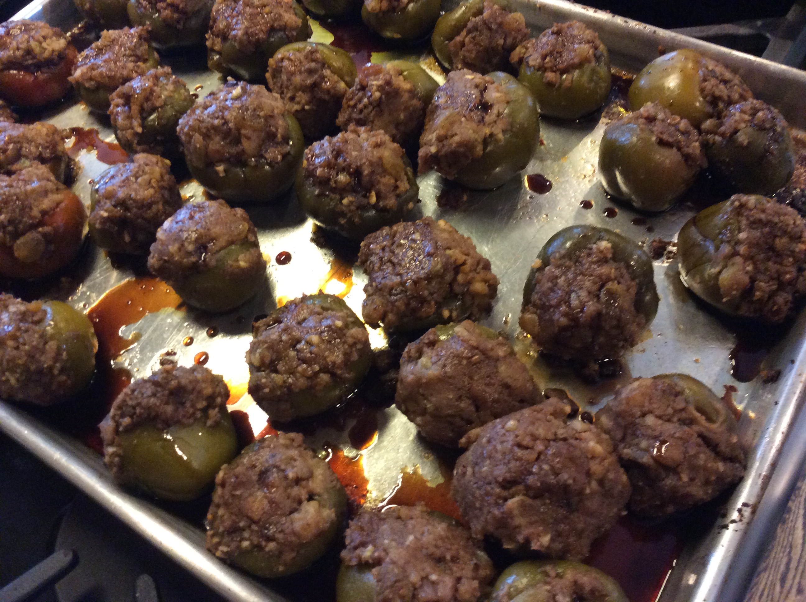 4. Stuff the peppers and place on the prepared pans. (if you want to try gently frying them, you would do so before putting them on the pans).