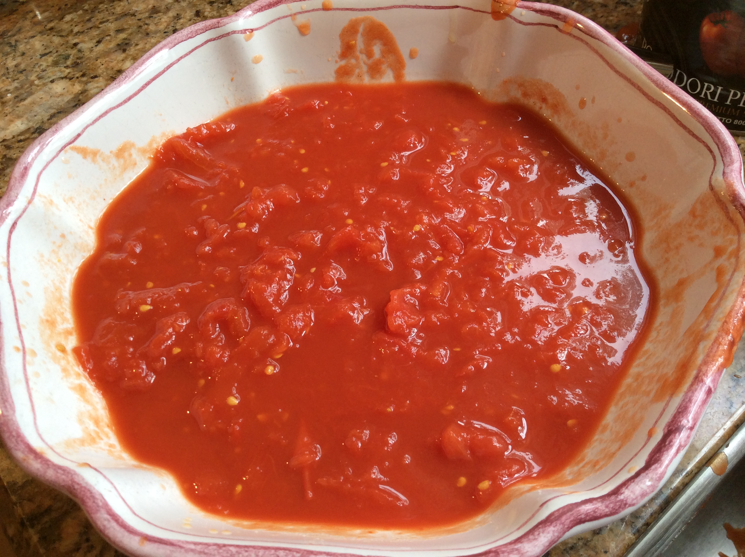 2 cups canned Italian peeled plum tomatoes, drained of their juice. ( I squish them, of course)