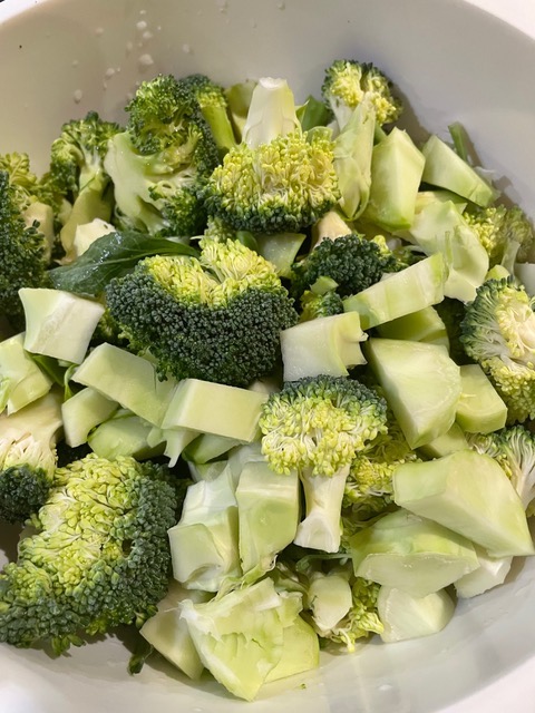 1 large head of broccoli and stems (about 1 pound) cut into small florets and coarsely chopped stems