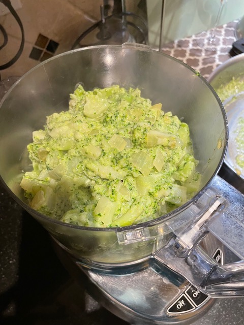 4. Transfer the broccoli mixture to a food processor and process until roughly creamy.