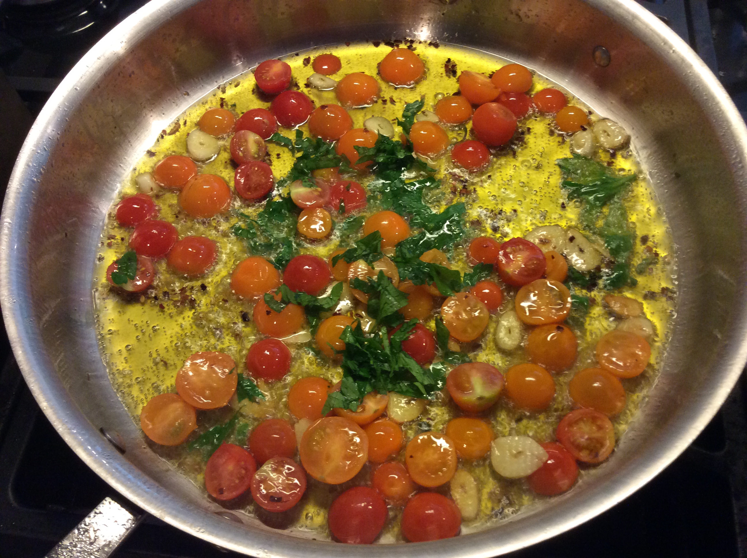 - Add the tomatoes and half the parsley. Cook until fragrant and the tomatoes begin to melt.