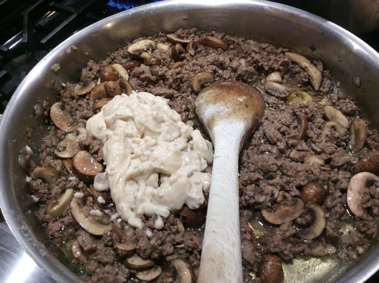 2 cups cubed chicken (she used rotisserie chicken….I boiled some boneless thighs)