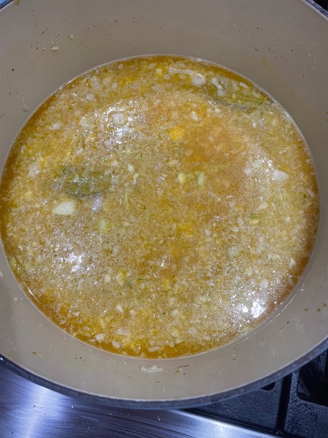 In a large pot, over medium heat, melt 3 tablespoons of butter. Add the onion, garlic and celery and cook 2 minutes. Do not brown. Add the salt, pepper, bay leaf, broth, pumpkin and cook, partially covered, about 25 minutes, or until the pumpkin can be mashed ( if using fresh pumpkin). Discard the bay leaf. Puree the soup with an immersion blender. (If putting this in a regular blender, cool first).